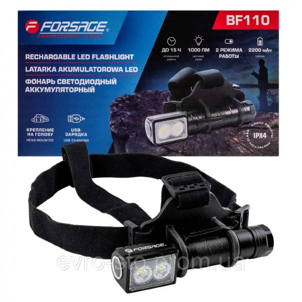 Фонарь светодиодный аккумуляторный налобный Forsage F-BF110 — это надежный налобный аккумуляторный фонарь, оснащённый светодиодной лампой, которая обеспечивает высокую яркость и долговечность работы. Налобное крепление: эластичный ремешок фиксирует фонарь на голове, освобождая руки и обеспечивая освещение именно в нужном направлении. Два режима работы: 250 лм (до 15 часов) и 1000 лм (до 3 часов) — возможность выбрать оптимальную яркость для конкретной задачи. Кемпинговое применение: идеально подходит для отдыха на природе, рыбалки, ремонта или использования в гараже. USB-зарядка: можно заряжать от компьютера, powerbank или любого устройства с USB-выходом. Магнитное крепление: нижняя часть фонаря оснащена магнитом для удобного закрепления на металлических поверхностях. Прочный корпус: изготовлен из ударопрочного алюминия, что гарантирует долговечность и устойчивость к нагрузкам. Влагозащита: класс защиты IPX4 обеспечивает работу даже в условиях брызг и влаги. Технические характеристики: - Световой поток: 250 / 1000 лм - Дальность освещения: до 180 м - Цветовая температура: 6500 K - Тип батареи: Li-ion 18650, 2200 мА·ч - Время зарядки: 3–4 часа - Материал: алюминий - Размеры: 54 × 65 × 122 мм - Вес: 158 г - Рабочая температура: от –20 °C до +75 °C