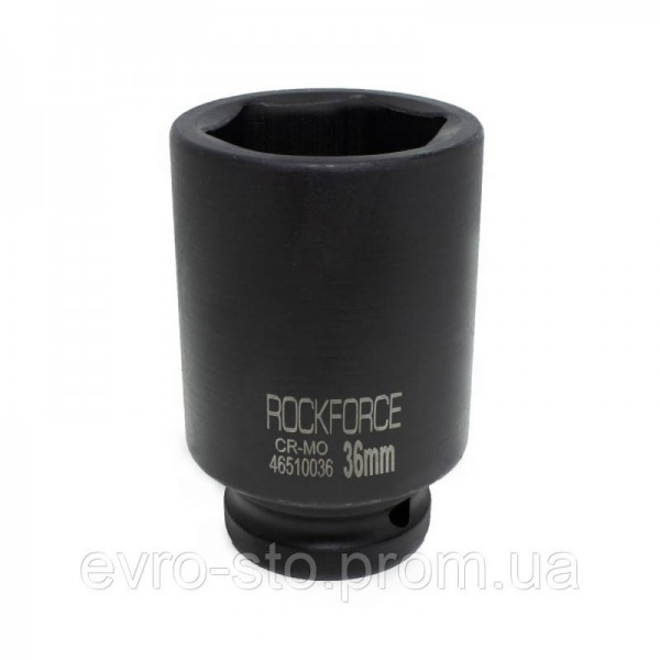 Ударная шестигранная головка ROCKFORCE RF-46510036 размером 36 мм, из стали CrMo, с присоединительным квадратом 3/4 дюймa, — сменная насадка для электрических и пневматических гайковертов. Она пригодится для монтажа и демонтажа крепежных элементов. Ударная головка выдерживает высокие динамические нагрузки, поэтому подходит для интенсивной эксплуатации на строительной площадке, в автомастерской и слесарном цеху.Особенности- Тип: торцевая- Конструкция: глубокая, ударная- Форма профиля: 6-гранная- Квадрат: 3/4"- Размер профиля: 36 мм