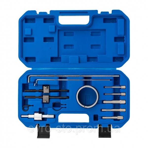Набор фиксаторов FORSAGE для обслуживания двигателей Citroen и Peugeot (1.8, 2.0) F-911G7 — профессиональный комплект из 13 предметов в удобном кейсе. Предназначен для точной и безопасной замены ремня ГРМ на бензиновых и некоторых дизельных двигателях. В комплект входят фиксаторы маховика, натяжителя и шкива, шпиндели и специальные оправки, обеспечивающие надежную фиксацию деталей при ремонте. Универсальный набор подходит для популярных моделей Citroen и Peugeot, включая Xsara, C5, Picasso, 406 и 807. Комплектация: - Фиксатор положения коленчатого вала - Фиксатор/штифт для распределительного вала (несколько размеров) - Фиксатор шкива/шкивов (захват) - Фиксатор натяжителя ремня ГРМ - Фиксатор фаз ГРМ (планка/скоба) - Направляющая втулка/кольцо для фиксации - Универсальные штифты для меток (длина и диаметр под двигатель) - Специальные оправки - Кейс