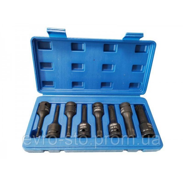 Набор головок-бит SPLINE ударных 8 предметов,1/2"(M5, M6, M8, M10, M12, M14, M16, M18), в кейсе FORCEKRAFT