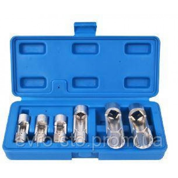 Для монтажа верхних и боковых проводных датчиков температуры, термовыключателей и других компонентов. Головки позволяют получить доступ к сложным трубным соединителям и проводным датчикам (за исключением лямбда). Они очень полезны для ослабления труб ABS, трубок главного цилиндра, дизельных впрыскивающих трубок и проводных датчиков. Состав набора:Специальная головка 3/8 дюйма 10 мм (46 мм)Специальная головка 3/8 дюйма 11 мм (46 мм)Специальная головка 3/8 дюйма 12 мм (46 мм)Специальная головка 3/8 дюйма 14 мм (64 мм)Специальная головка 1/2 дюйма 17 мм (78 мм)Специальная головка 1/2 дюйма 19 мм (78 мм)