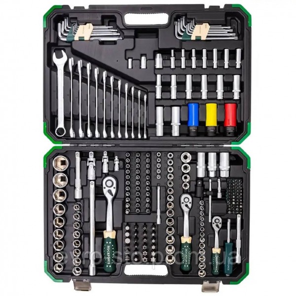Набор инструментов Rockforce 222 предмета RF-42222-5— универсальный комплект для автослесарей, ремонтников, монтажников и домашних мастеров. Включает три посадочных квадрата (1/4", 3/8", 1/2") и охватывает весь спектр работ: от точной сборки до силового монтажа. Все элементы выполнены из прочных материалов (CRV, CRMO) и удобно размещены в кейсе. Максимальная универсальность: Три посадочных квадрата — 1/4", 3/8", 1/2" — подходят для работы с мелкими, средними и крупными крепежами. Головки 6-гранные, 12-гранные, глубокие, ударные, свечные, Е-профиль — полный спектр для любых типов болтов и гаек. Головки-биты и битодержатели обеспечивают совместимость с ручным и электроинструментом. Полный приводной набор: Трещотки с реверсом 72 зуба (150, 200, 250 мм) — плавный ход и удобство в ограниченном пространстве. Воротки, удлинители, карданные шарниры, адаптеры — гибкость и доступ к труднодоступным узлам. Расширенный ручной инструмент: Комбинированные ключи (12 шт.) и Г-образные Torx/HEX (18 шт.) — для точной и силовой работы. Отвертки, плоскогубцы, пассатижи, молоток, зажим — всё необходимое для слесарных и монтажных операций. Биты на все случаи: Более 100 бит разных форматов и профилей — HEX, SL, PH, PZ, TORX, TW, SP, TQ, TH, MN, S — для любых типов крепежей. Форматы 1/4", 5/16", 3/8" — совместимы с различными инструментами и адаптерами. Надёжность и качество: Материалы: CR-V, CRMO — высокая прочность, устойчивость к износу и коррозии. Прочный кейс — компактное хранение, защита от повреждений и удобство транспортировки. Комплектация: Посадочный квадрат 1/4": - Головки 6-гранные 13 шт.: 4, 4.5, 5, 5.5, 6, 7, 8, 9, 10, 11, 12, 13, 14 мм; - Головки глубокие 6-гранные 7 шт.: 4, 5, 6, 7, 8, 9, 10 мм; - Головки Е-профиль 5 шт.: 4, 5, 6, 7, 8 мм; - Трещотка реверсивная 72 зуба 150 мм; - Вороток Т-образный 115 мм; - Рукоятка для головок 150 мм; - Шарнир карданный; - Битодержатель 1/4"(Sq.F)×1/4"(Hex.F); - Удлинители 2 шт.: 50, 100 мм; - Головки-биты 33 шт.: H 3, 4, 5, 6, 7, 8 мм; SL 4, 5.5, 7 мм; PH 1, 2×2, 3; PZ 1, 2, 3; T 8, 9, 10, 15, 20, 25, 27, 30, 40; TH 8, 9, 10, 15, 20, 25, 27, 30; Посадочный квадрат 3/8": - Головки 12-гранные 10 шт.: 10, 11, 12, 13, 14, 15, 16, 17, 18, 19 мм; - Головки глубокие 6-гранные 6 шт.: 10, 11, 12, 13, 14, 15 мм; - Головки Е-профиль 6 шт.: 10, 11, 12, 14, 16, 18 мм; - Трещотка реверсивная 72 зуба 200 мм; - Головка свечная 18 мм; - Шарнир карданный; - Битодержатель 3/8"(Sq.F)×5/16"(Hex.F); - Удлинитель 125 мм; Посадочный квадрат 1/2": - Головки 6-гранные 17 шт.: 10, 11, 12, 13, 14, 15, 16, 17, 18, 19, 20, 21, 22, 24, 27, 30, 32 мм; - Головки глубокие 6-гранные 2 шт.: 16, 18 мм; - Головки глубокие ударные для литых дисков 3 шт.: 17, 19, 21 мм; - Головки Е-профиль 2 шт.: 20, 24 мм; - Трещотка реверсивная 72 зуба 250 мм; - Удлинители 2 шт.: 125, 250 мм; - Адаптер с отверстием 3/8"(Sq.F)×1/2"(Sq.M); - Шарнир карданный; - Битодержатель 1/2"(Sq.F)×5/16"(Hex.F); - Головки свечные 2 шт.: 16, 21 мм; Другие компоненты: - Комбинированные ключи 12 шт.: 8, 9, 10, 11, 12, 14, 15, 16, 17, 18, 19 мм; - Г-образные Torx 9 шт.: 10, 15, 20, 25, 27, 30, 40, 45, 50; - Г-образные 6-гранные 9 шт.: 1.5, 2, 2.5, 3, 4, 5, 6, 8, 10 мм; - Биты 1/4"×25 мм 44 шт.: H 3, 4, 5, 6 мм; HH 3, 4, 5, 6 мм; SL 4, 5.5, 6 мм; PH 1, 2, 3; PZ 1, 2, 3; M 5, 6, 8; TQ 6, 8, 10; TW 1, 2, 3; SP 4, 6, 8; TH 8, 10×2, 15×2, 20×2, -25×2, 40; T 8, 10, 15, 20, 25; S 1, 2; - Биты 5/16"×30 мм 24 шт.: H 7, 8, 10, 12, 14 мм; PH 3, 4; PZ 3, 4; SL 8, 10, 12 мм; T 40, 45, 50, 55, 60, 70; TH 40, 45, 50, 55, 60, 70; - Кейс для хранения всего набора.