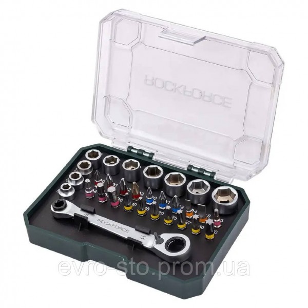 Набор инструментов Rockforce RF-2311-5 включает 31 предмет на 1/4", идеально подходящий для выполнения различных задач в области ремонта и сборки. Каждый инструмент изготовлен из высококачественного хром-ванадиевого сплава, что обеспечивает долговечность и надежность. Разнообразие бит: В наборе 20 бит различных типов и размеров, что позволяет работать с большинством распространенных крепежных элементов. Качество материалов: Изготовлены из прочного хром-ванадиевого сплава, гарантируя устойчивость к износу и коррозии, а также продлевая срок службы. Удобство использования: В комплекте трещотка для легкого и быстрого затягивания или ослабления крепежей. Компактность: Все инструменты аккуратно размещены в компактной коробке, что облегчает транспортировку и хранение. Комплектация: - Головки 6-гранные 1/4": 5, 6, 7, 8, 9, 10, 11, 12, 13, 14 мм (10 шт.) - Трещоточный ключ: (битодержатель 1/4" - 11 мм) (1 шт.) - Биты 1/4" × 25 мм (20 шт.): SL: 4, 6 мм; T: T10, T15, T20, T25, T27, T30, T40; H: 3, 4, 5, 6 мм; PH: 0, 1, 2, 2; PZ: 0, 1, 2