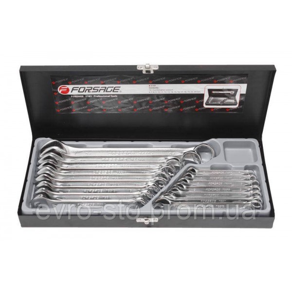 Практичный и надежный набор комбинированных ключей Forsage F-5161 станет незаменимым помощником при ремонтных, монтажных и сервисных работах. Комплект включает широкий диапазон размеров и подходит как для бытового использования, так и для профессионального обслуживания техники и автомобилей.Тип ключей: Комбинированные ключи сочетают в себе рожковый и накидной профили, что делает их универсальными и удобными для работы в труднодоступных местах.Дизайн: Рожковая сторона подходит для крепежа с односторонним доступом, а накидная часть с 12 гранями идеально справляется с высоконагруженными резьбовыми соединениями.Комплектация: Ключи комбинированные: 6, 7, 8, 9, 10, 11, 12, 13, 14, 15, 16, 17, 18, 19, 22, 24 мм; металлический кейс.Материал: Изготовлены из высококачественной хромованадиевой стали, что значительно увеличивает их прочность и устойчивость к механическим нагрузкам.Металлический кейс: Все ключи надежно закреплены в собственных нишах, что обеспечивает удобное хранение и легкий доступ. Компактный размер кейса позволяет легко брать набор с собой и хранить в автомобиле.Компактность и сбалансированный состав: Набор включает только самые востребованные размеры, что делает его идеальным для использования в различных ситуациях.