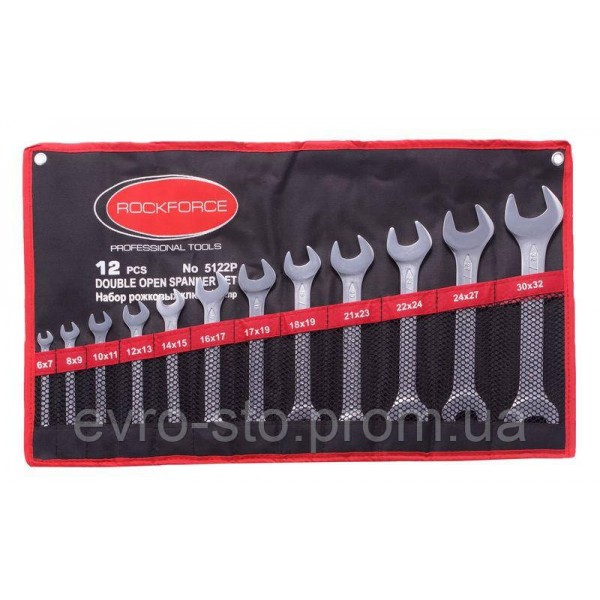 Код товара: 11537, Состав: Набор ключей рожковых RF-5122P: 6-32мм 12пр. (на полотне) ROCKFORCE /1/8
