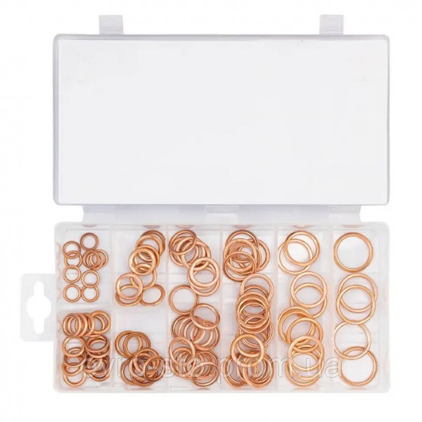 Набор медных шайб Forsage F-068713включает 95 высококачественных плоских шайб, которые увеличивают площадь прижима поверхности и предотвращают самопроизвольное выкручивание крепежных деталей. Шайба — это важный элемент крепежа, используемый вместе с болтами, саморезами, гайками, винтами и другими элементами. Медь обеспечивает надежное соединение деталей и подходит для различных крепежных систем. Размеры и количество в наборе: - 8.4×12×1.8 мм — 10 шт; - 10.4×15.8×2 мм — 15 шт; - 12.4×17.8×2.2 мм — 15 шт; - 14.4×19.8×2.2 мм — 20 шт; - 16.4×21.8×2 мм — 20 шт; - 18.2×23.8×2.2 мм — 10 шт; - 20.2×25.8×2.2 мм — 5 шт.