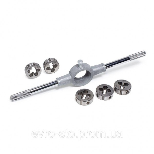 Набор плашек Forsage F-C006-1 - набор инструмента, который пригодится для выполнения задач, связанных с нарезкой наружной резьбы на различных цилиндрических деталях. В набор входят самые оптимальные размеры для выполнения поставленных задач. Благодаря высококачественному выполнению инструментов такой набор гарантирует эффективную эксплуатацию и долговечность использования.Набор- 5 плашек: M6x1, M7x1, M8x1.25, M10x1.5, M12x1.75- Держатель плашек (метрич.)- БлистерОсобенности- Работа со стальными изделиями прочностью до 800 Н/мм2- Материал: закалённая сталь