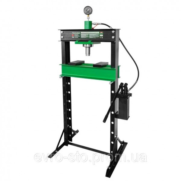 Пресс гидравлический напольный Rockforce RF-30001 — это мощное и надежное оборудование, предназначенное для выполнения широкого спектра работ: сжатия, выгибания, запрессовки и других гидравлических операций. Модель отлично подходит для использования в автомастерских, на промышленных предприятиях, СТО и в производственных цехах, где требуется работа с тяжелыми деталями и узлами. Характеристики: - Максимальная нагрузка: 30 т - Рабочая высота: 0–965 мм - Рабочая ширина: 690 мм Преимущества: Мощность и надежность. Пресс выдерживает нагрузку до 30 тонн, что делает его идеальным решением для работы с массивными деталями и металлоконструкциями. Удобство эксплуатации. Приводится в действие с помощью рукояти, обеспечивая простоту, контроль и комфорт в работе. Стабильная конструкция. Прочные поперечные пластины основания гарантируют устойчивость оборудования и повышают безопасность при выполнении операций. Регулируемая высота стола. Перфорированные стойки позволяют быстро изменять рабочую высоту, обеспечивая универсальность пресса под разные задачи. Двухскоростная гидравлическая станция. Возможность выбора скорости прессования позволяет оптимизировать процесс и повысить производительность. Контроль давления. Оснащен манометром для точного контроля усилия, что увеличивает безопасность и эффективность работы. Широкая сфера применения. Идеально подходит для автомастерских, СТО, производственных и ремонтных предприятий, где требуется надежное и высокопроизводительное гидравлическое оборудование.